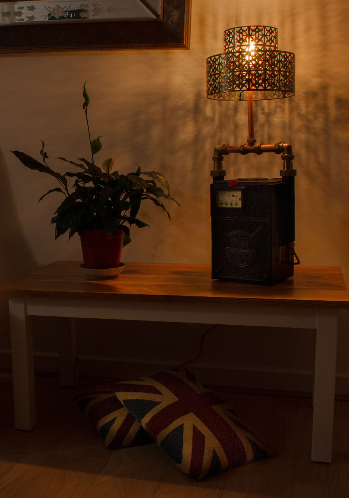 £175.00Original price was: £175.00.£155.00Current price is: £155.00.Add to basketA bespoke, vintage metal Petrol Can converted to a lamp. Painted in Satin Black but retaining its patina with a contrasting red cap. This is the very first lamp we created so would be a very special item to whoever buys it. Shade and Light Bulb not included.